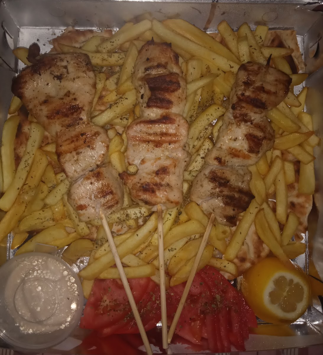 Ενδέχεται να είναι το πιο καλό καλαμάκι κοτόπουλο που έχω φάει στη ζωή μου, και σίγουρα έχω φάει αρκετά! Συγχαρητήρια! Περιποιημένο, με πίτες και πατάτες! Ζουμερό και χωρίς λίπος, υπέροχα ψημένο!